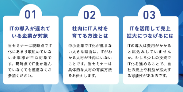 DX学校 奈良市校では、IT導入セミナー(参加無料)を開催いたします。